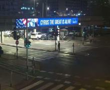 همزمان با سفر دونالد ترامپ رئیس جمهور آمریکا به اسرائیل، بیلبوردهایی با شعار کورش کبیر زنده است در تلآویو آذین بندی شده است.