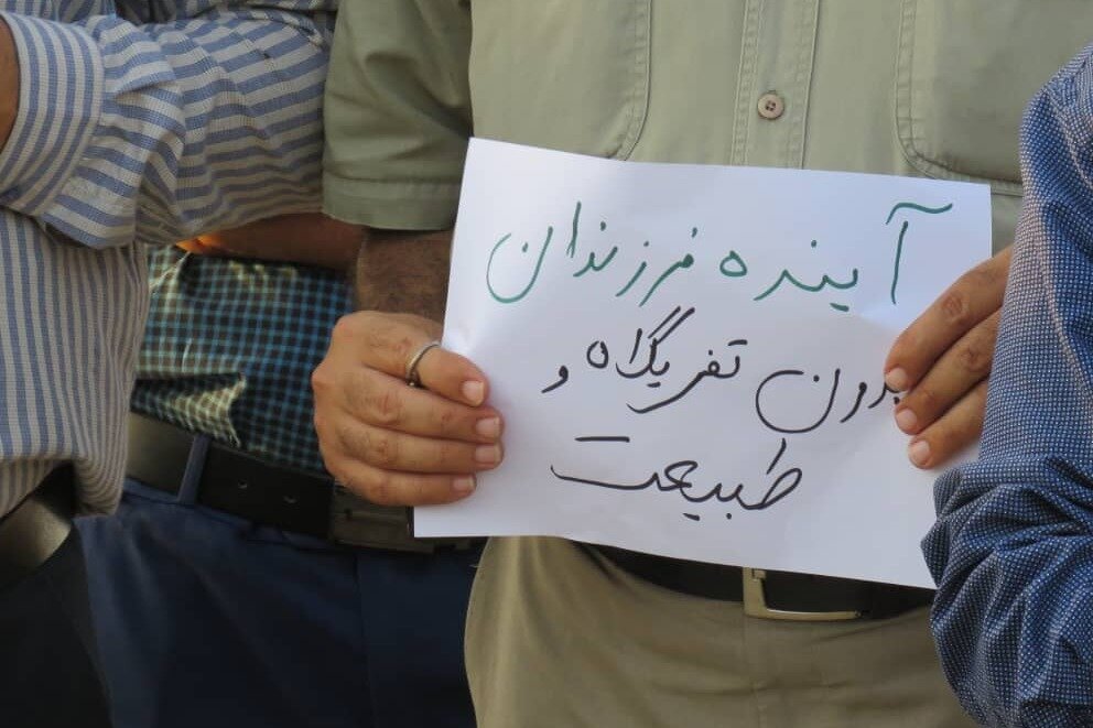 شرکت کنندگان در این گردهمایی پس از مشاهده عینی تخریبها و تعرضهای صورت گرفته زنجیره انسانی حمایت از طبیعت را با شعار هماهنگ «تخریب محیط زیست ممنوع» تشکیل دادند.
