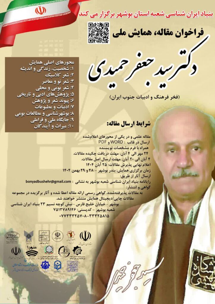 پوستر همایش ملی مانایاد دکتر سید جعفر حمیدی در بوشهر منتشر شد.